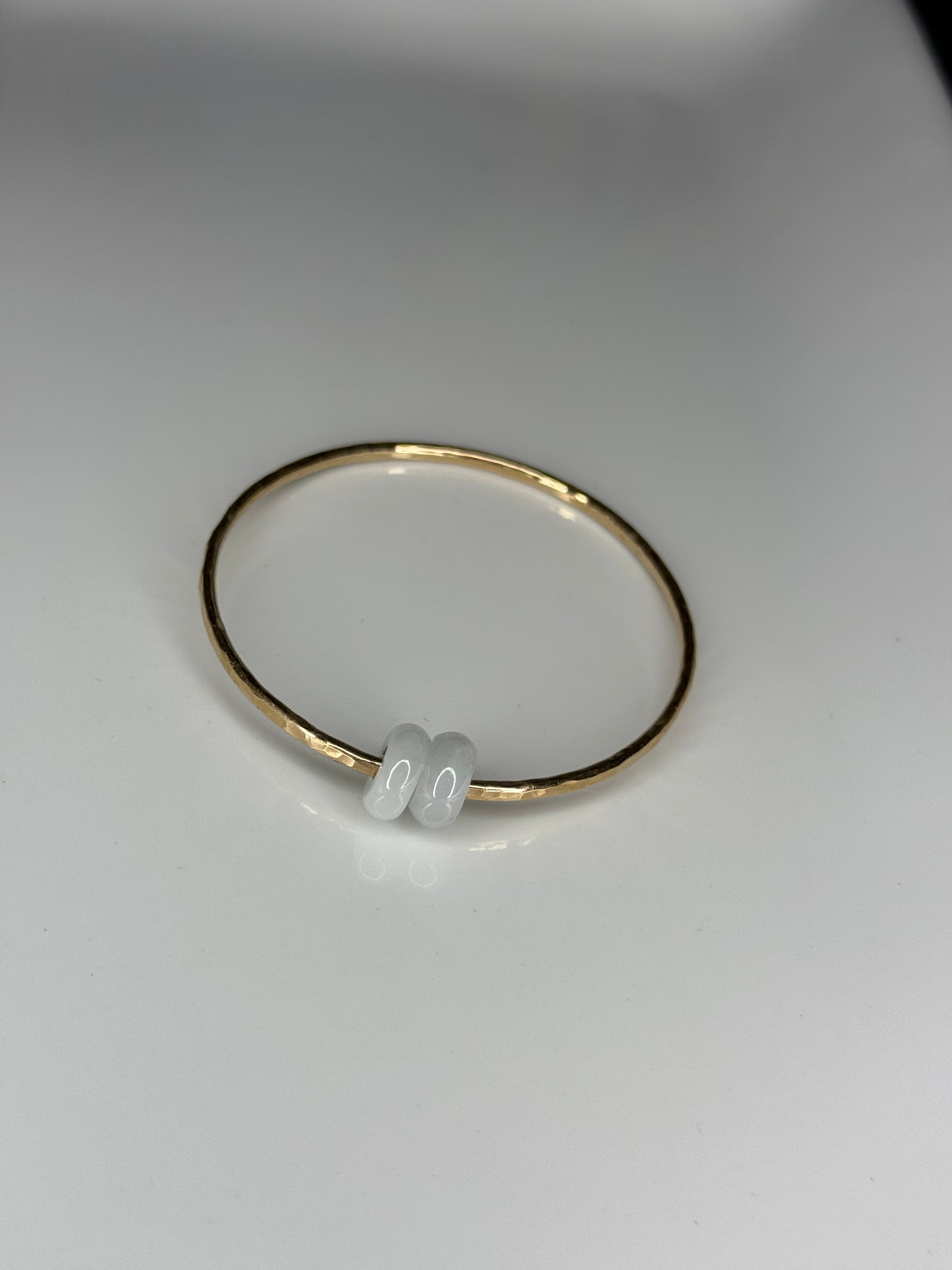 14K gold filled triple white jade baby bangle. Made with 12 or 14 gauge wire. Hammered and polished for that extra sparkle.